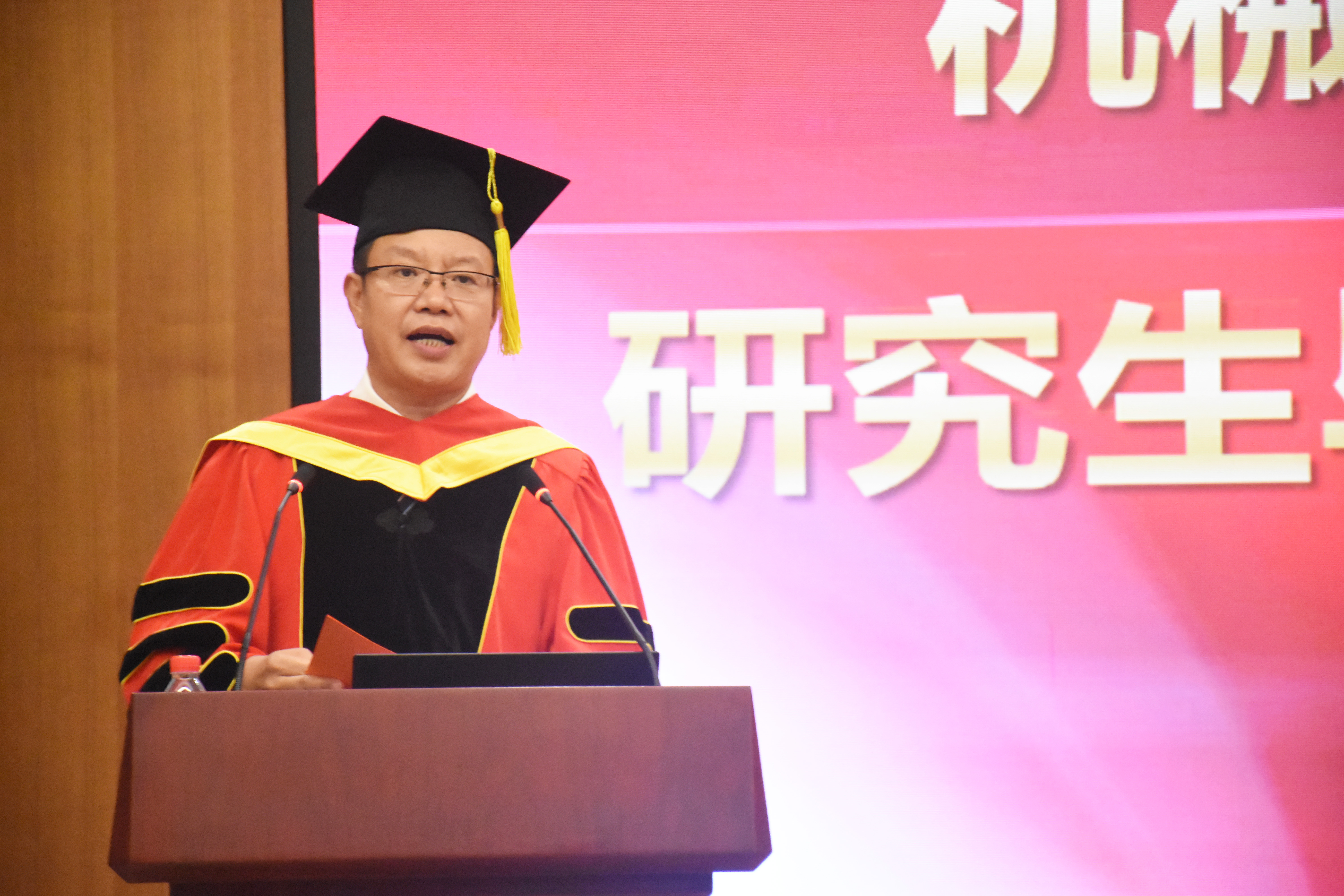最后,王德成主席作了重要講話,他祝賀所有畢業生順利畢業并取得學位,對導師、各研究生培養單位以及相關職能部門的辛勤工作表示感謝,對家長們的默默付出致以敬意,并對畢業生們在今后的學習工作中提出了三點希望:一是希望同學們牢固樹立正確的人生觀、價值觀,恪守做人之道,牢記習近平總書記“愛國、勵志、求真、力行”的囑托,進一步培養自己的高尚情操,提升自己的人格品味;二是希望同學們不斷學習、持續提升和全面發展,永葆進取之心,在新時代有新擔當和新作為,“幸福都是奮斗出來的,奮斗本身也是一種幸福”,“每個青年都應該珍惜這個偉大時代,做新時代的奮斗者”;三是希望同學們志存高遠,“自信人生二百年,會當水擊三千里”,不斷發揚創新精神和“工匠精神”,腳踏實地,愛黨愛國、愛院愛家,奏響更加精彩的人生篇章。